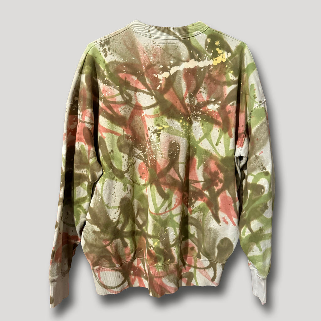 This unique garment features a complex urban camouflage pattern made from various layers of tags, each dyed in its own distinct color. With only one of each piece available, each item offers a one-of-a-kind appeal. The production process involves multiple steps, including reverse tie-dying, multiple layers of dyeing, and silk-screen printing on durable, comfortable, and warm G STAR CREW NECK(RUNS SMALL). Get yours today and embrace the outdoors with Never Sleep Urban Camo Crewnecks